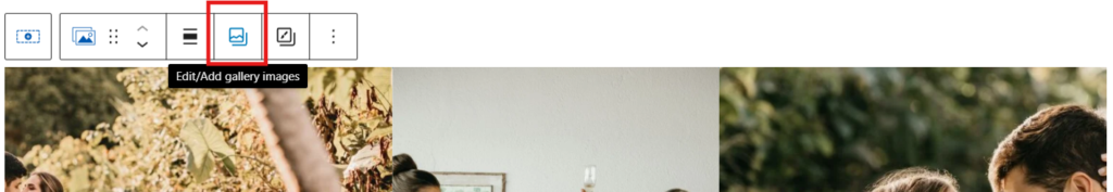 2. Click the stacked photo icon that appears in the tooltip that appears just above the block to Edit/Add gallery images.