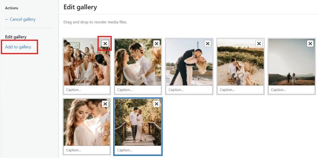 3. Remove any of the placeholder photos by clicking the X in the top right corner of the icons.