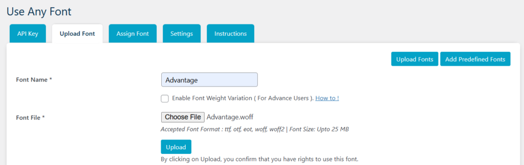 Step 2 – Upload the Font