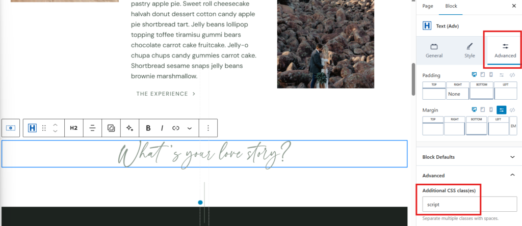 By default, the template has assigned specific Text Blocks with this custom font so each time you reassign the .script class, they will update with whatever font you assigned in Step 3. This makes it easier for you to make changes in one sweep, instead of each block one at a time.